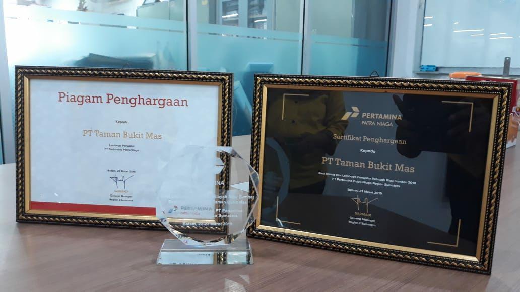 Penghargaan agen baru terbaik di PT. Pertamina Patra Niaga tahun 2018. Penghargaan ini di berikan kepada PT. taman bukit mas yang merupakan salah satu perusahaan Penyalur BBM non subsidi di PT. Pertamina Patra Niaga. PT. Taman Bukit Mas membuktikan kualitas dan kuantitas dalam hal penjualan BBM non subsidi, sehingga PT. Pertamina Patra Niaga memberikan penghargaan luar bisa kepada perusahaan yang baru saja bergabung menjadi agen (Penyalur) mereka ini.